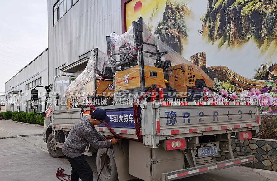 4月23日,福瑞得機械將日照客戶十天前訂購的7臺1噸全液壓振動壓路機裝車發(fā)走。