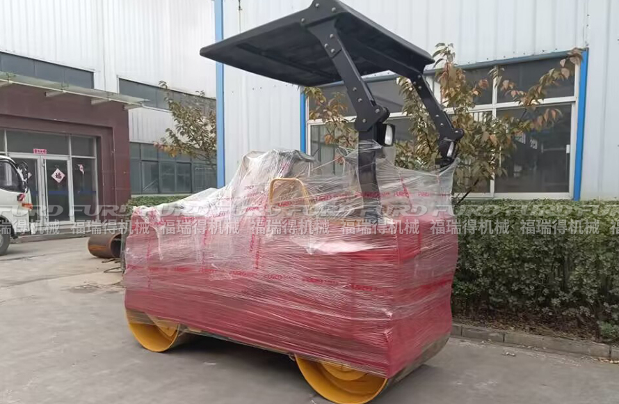 福瑞得機械一臺雙鋼輪座駕壓路機打包發(fā)往青島市
